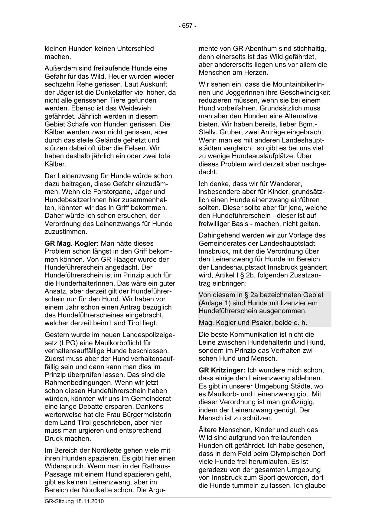 Bereich der Nordkette schon. Die ArguGR-Sitzung 18.11.2010