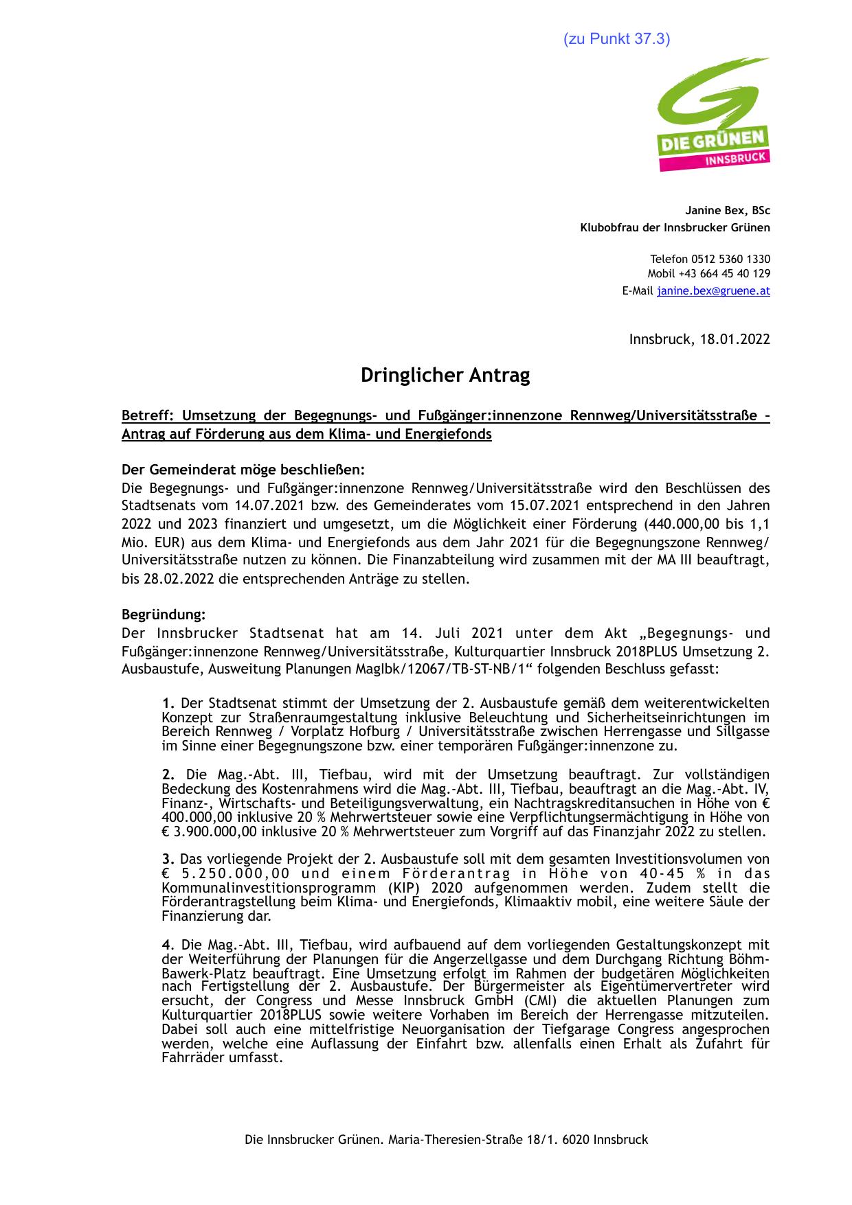 Der Innsbrucker Stadtsenat hat am 14. Juli 2021 unter dem Akt „Begegnungs- und