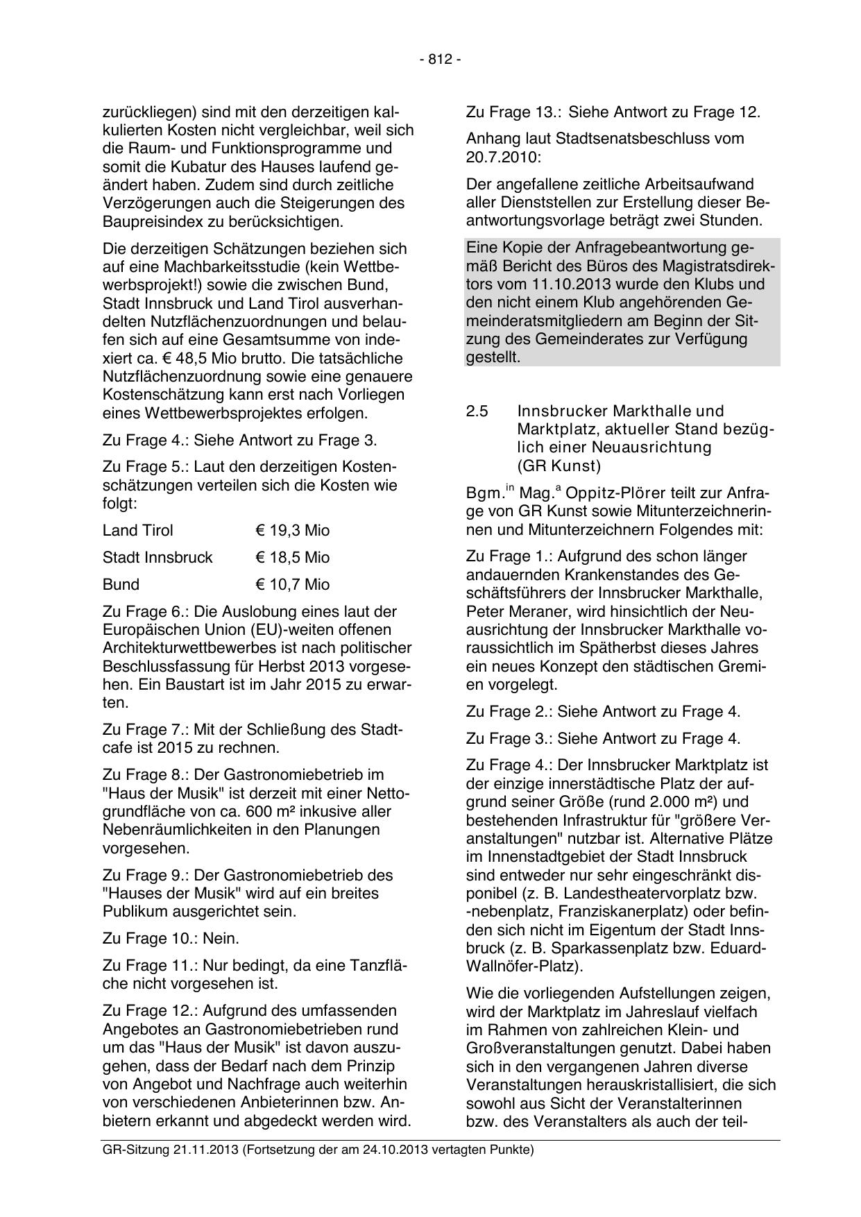 GR-Sitzung 21.11.2013 (Fortsetzung der am 24.10.2013 vertagten Punkte)