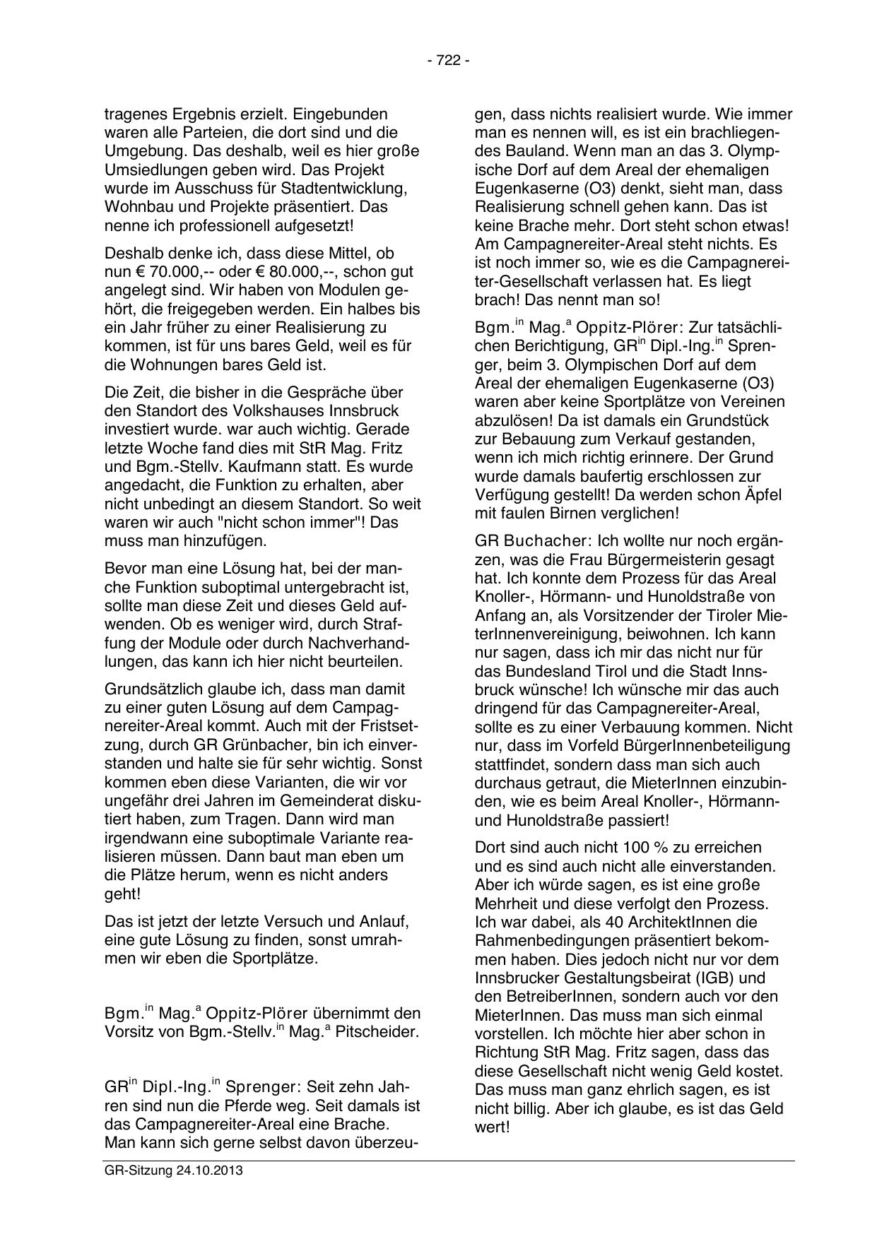 Bgm.in Mag.a Oppitz-Plörer: Zur tatsächlichen Berichtigung, GRin Dipl.-Ing.in Sprenger, beim 3. Olympischen Dorf auf dem
