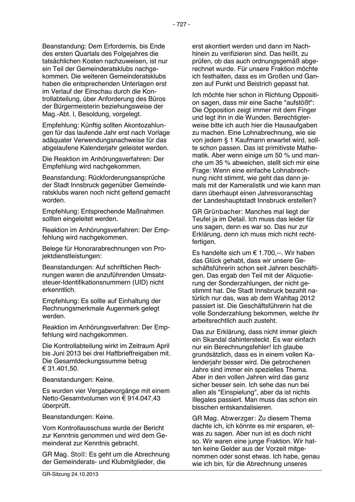das Glück gehabt, dass wir unsere Geschäftsführerin schon seit Jahren beschäftigen. Das ergab den Teil mit der Aliquotierung der Sonderzahlungen, der nicht gestimmt hat. Die Stadt Innsbruck bezahlt natürlich nur das, was ab dem Wahltag 2012
