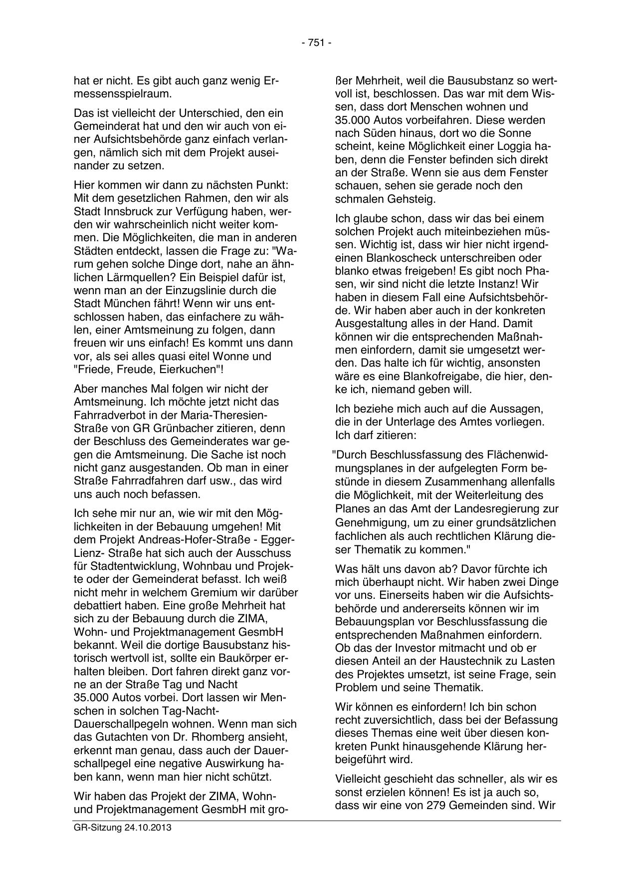 für Stadtentwicklung, Wohnbau und Projekte oder der Gemeinderat befasst. Ich weiß