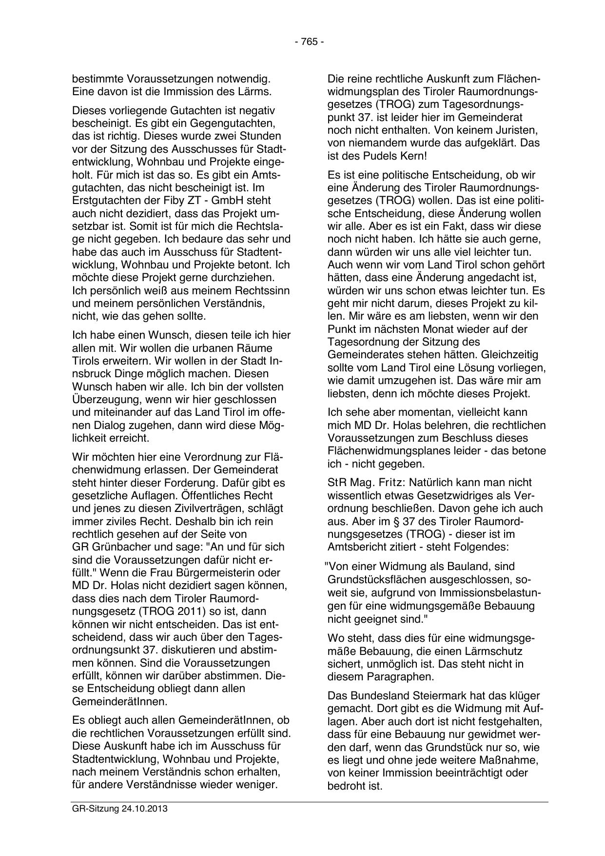 Die reine rechtliche Auskunft zum Flächenwidmungsplan des Tiroler Raumordnungsgesetzes (TROG) zum Tagesordnungspunkt 37. ist leider hier im Gemeinderat