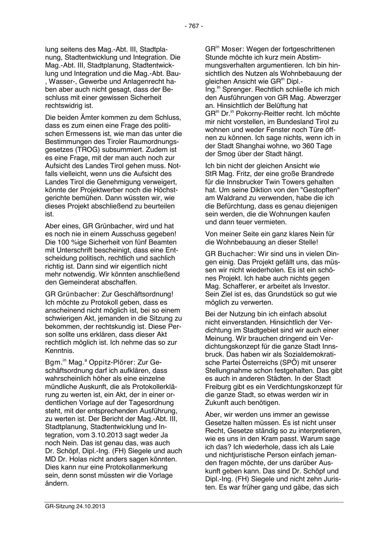 Bgm.in Mag.a Oppitz-Plörer: Zur Geschäftsordnung darf ich aufklären, dass
