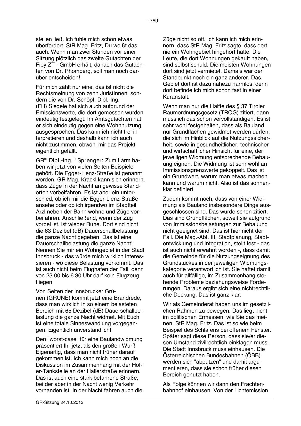 Innsbruck - das würde mich wirklich interessieren - wo diese Belastung vorkommt. Das