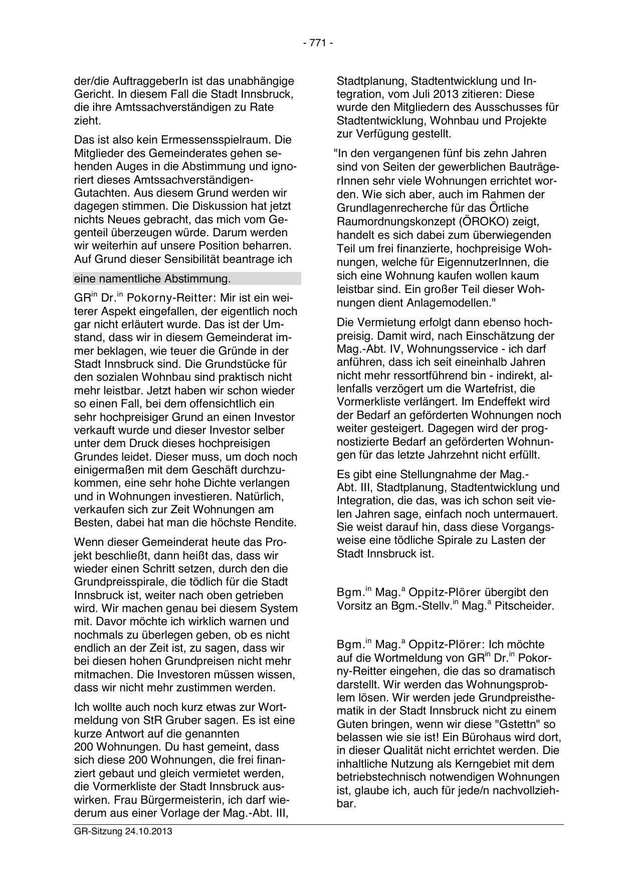 darstellt. Wir werden das Wohnungsproblem lösen. Wir werden jede Grundpreisthematik in der Stadt Innsbruck nicht zu einem