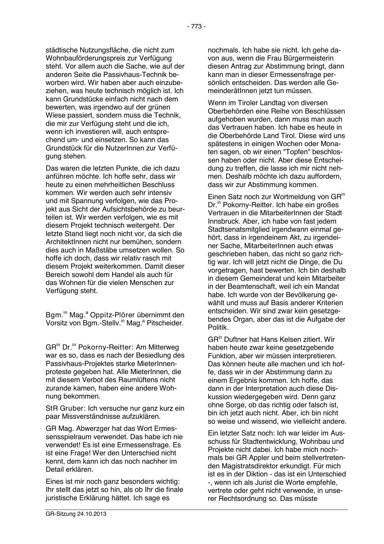 kann man in dieser Ermessensfrage persönlich entscheiden. Das werden alle GemeinderätInnen jetzt tun müssen.