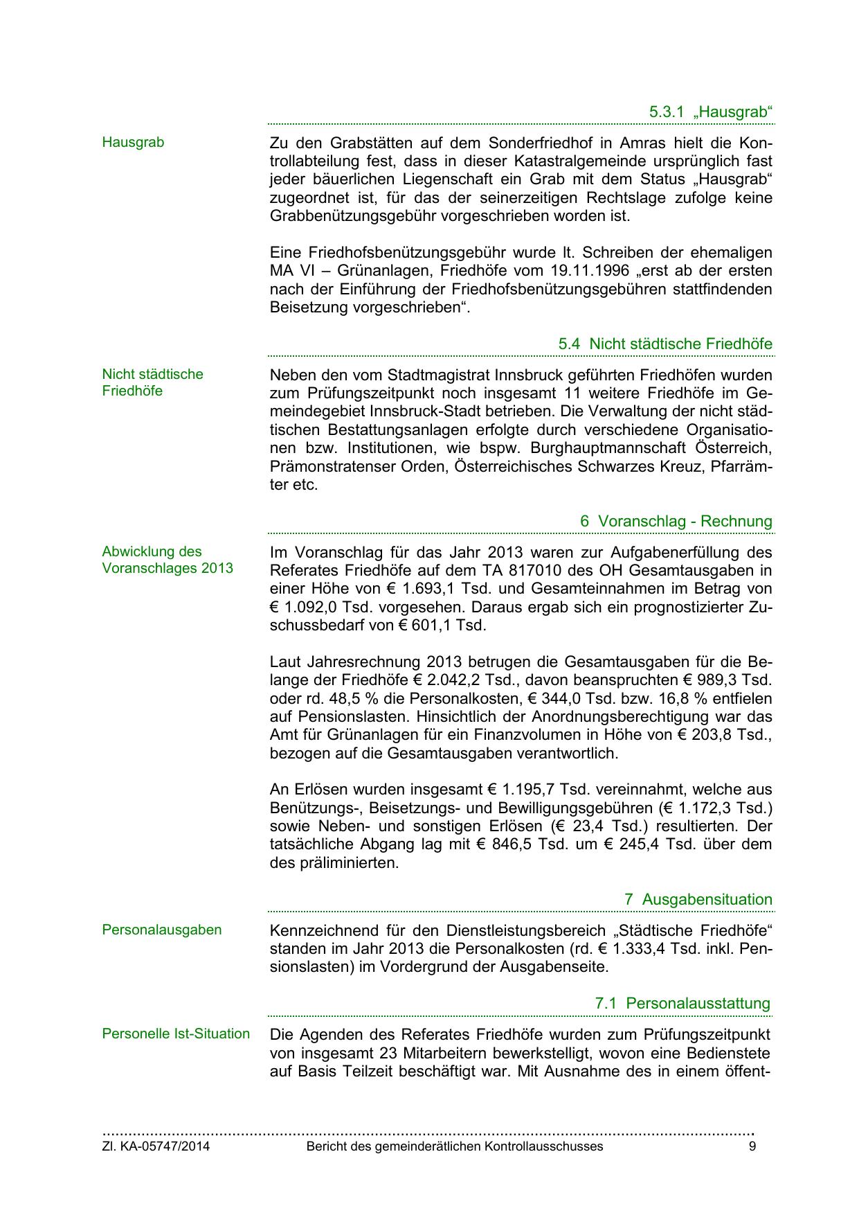 Die Agenden des Referates Friedhöfe wurden zum Prüfungszeitpunkt