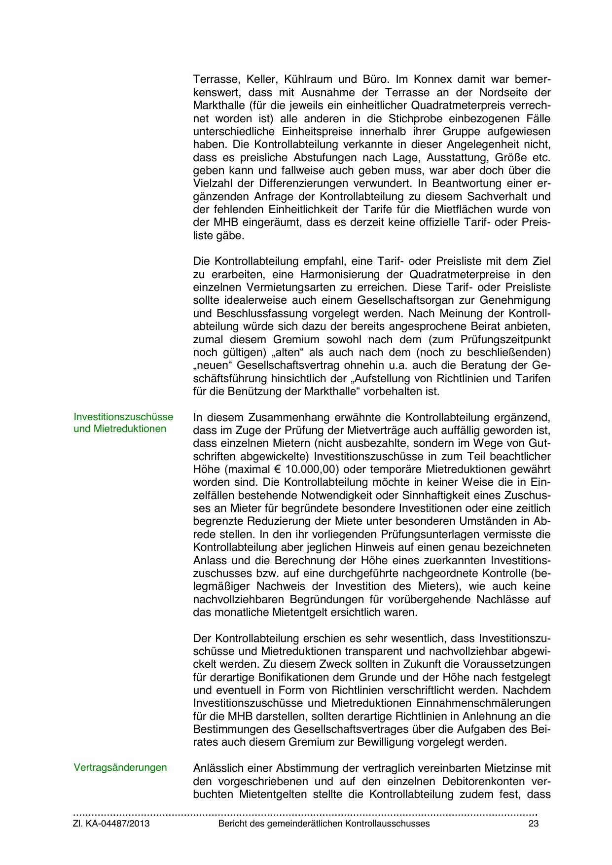 Der Kontrollabteilung erschien es sehr wesentlich, dass Investitionszuschüsse und Mietreduktionen transparent und nachvollziehbar abgewickelt werden. Zu diesem Zweck sollten in Zukunft die Voraussetzungen
