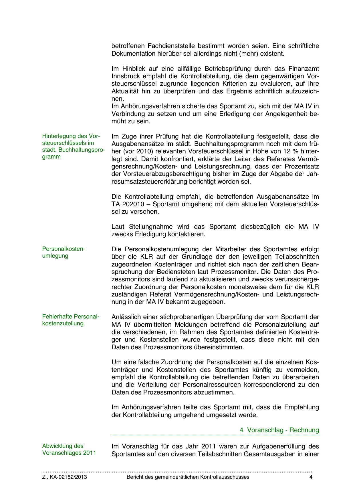 Ausgabenansätze im städt. Buchhaltungsprogramm noch mit dem früher (vor 2010) relevanten Vorsteuerschlüssel in Höhe von 12 % hinterlegt sind. Damit konfrontiert, erklärte der Leiter des Referates Vermögensrechnung/Kosten- und Leistungsrechnung, dass der Prozentsatz