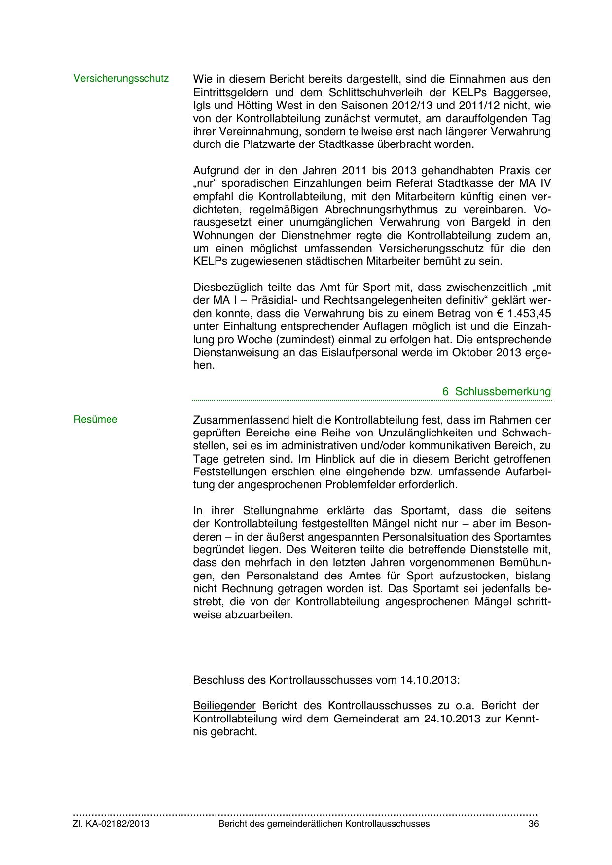 Kontrollabteilung wird dem Gemeinderat am 24.10.2013 zur Kenntnis gebracht.