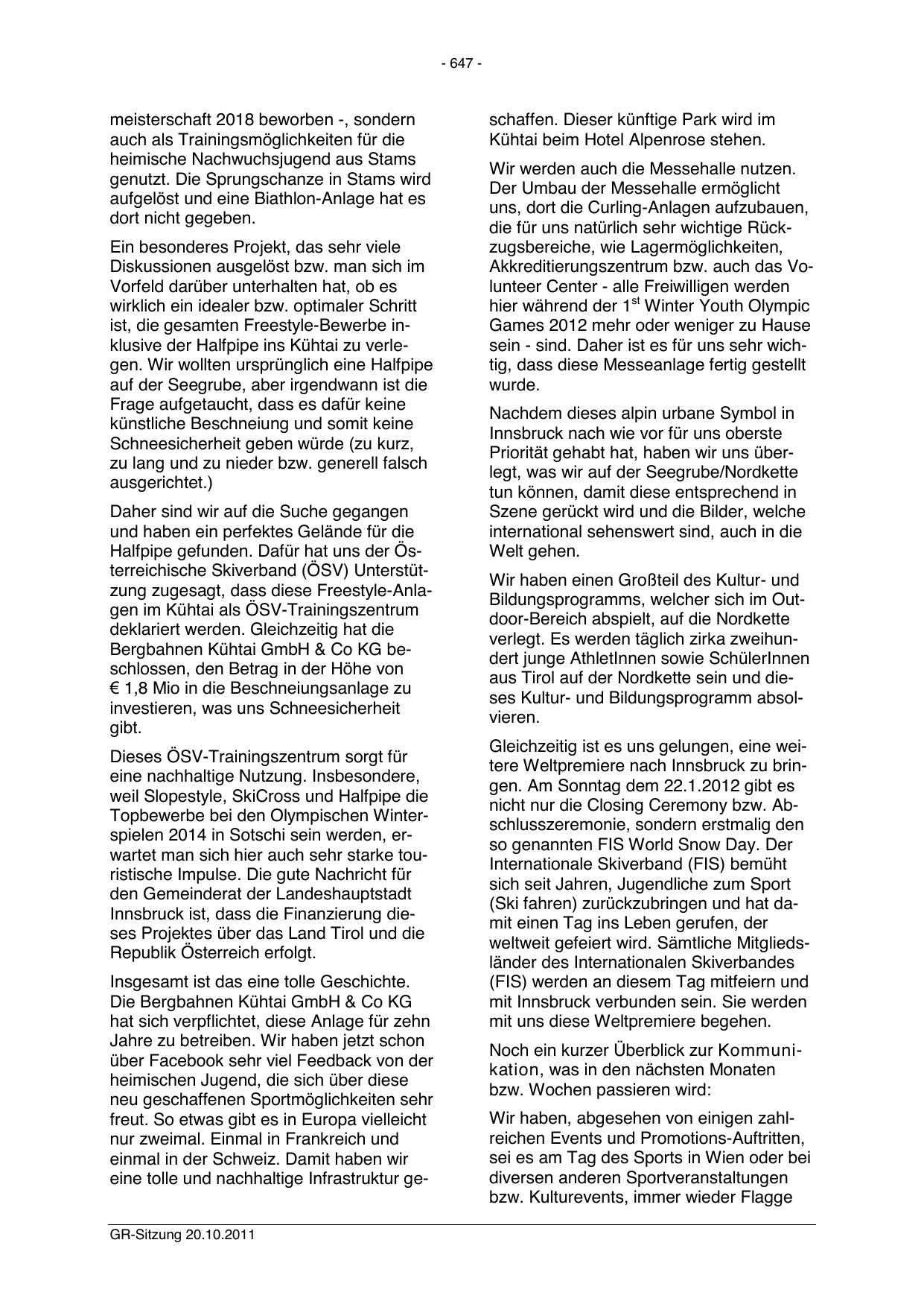 Innsbruck ist, dass die Finanzierung dieses Projektes über das Land Tirol und die