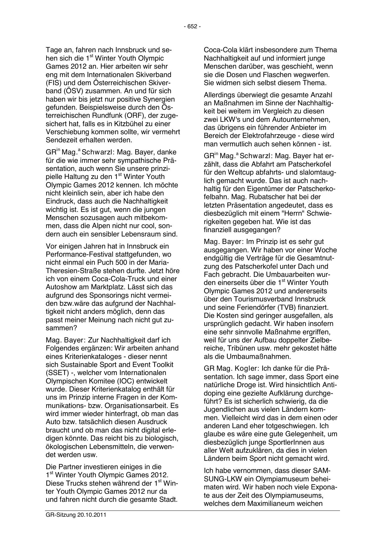 GR Mag. Kogler: Ich danke für die Präsentation. Ich sage immer, dass Sport eine