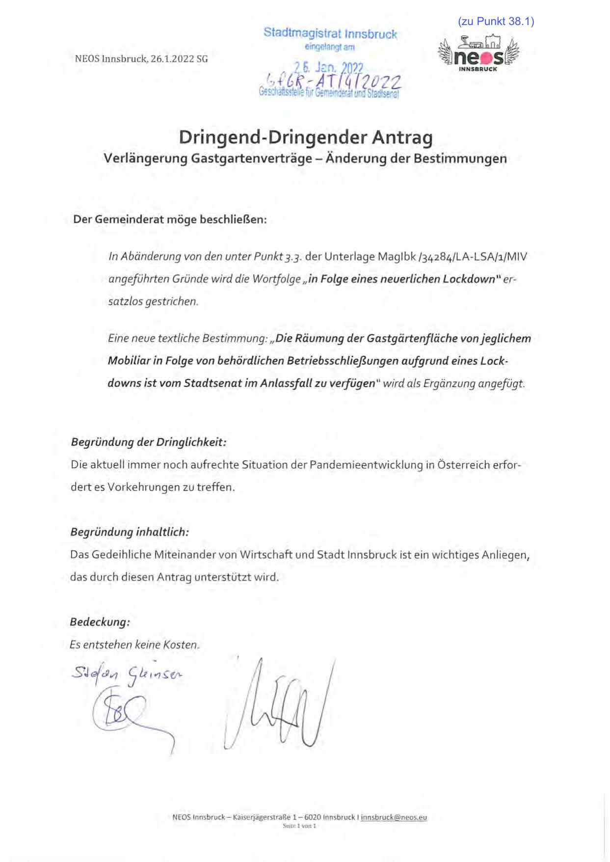 Mobiliar in Folge von behördlichen Betriebsschließungen aufgrund eines Lockdowns ist vom Stadtsenat im Anlassfall zu verfügen" wird als Ergänzung angefügt.