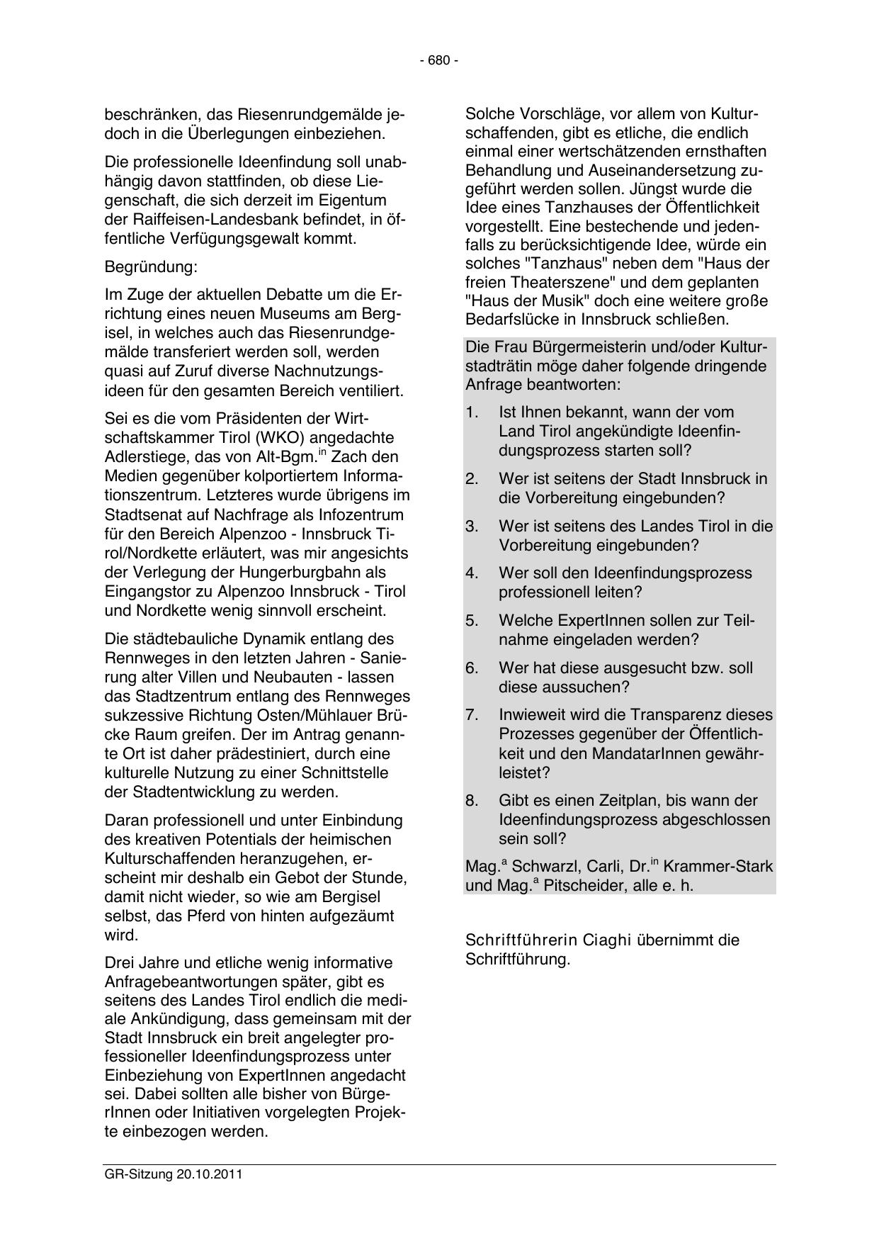 Stadt Innsbruck ein breit angelegter professioneller Ideenfindungsprozess unter