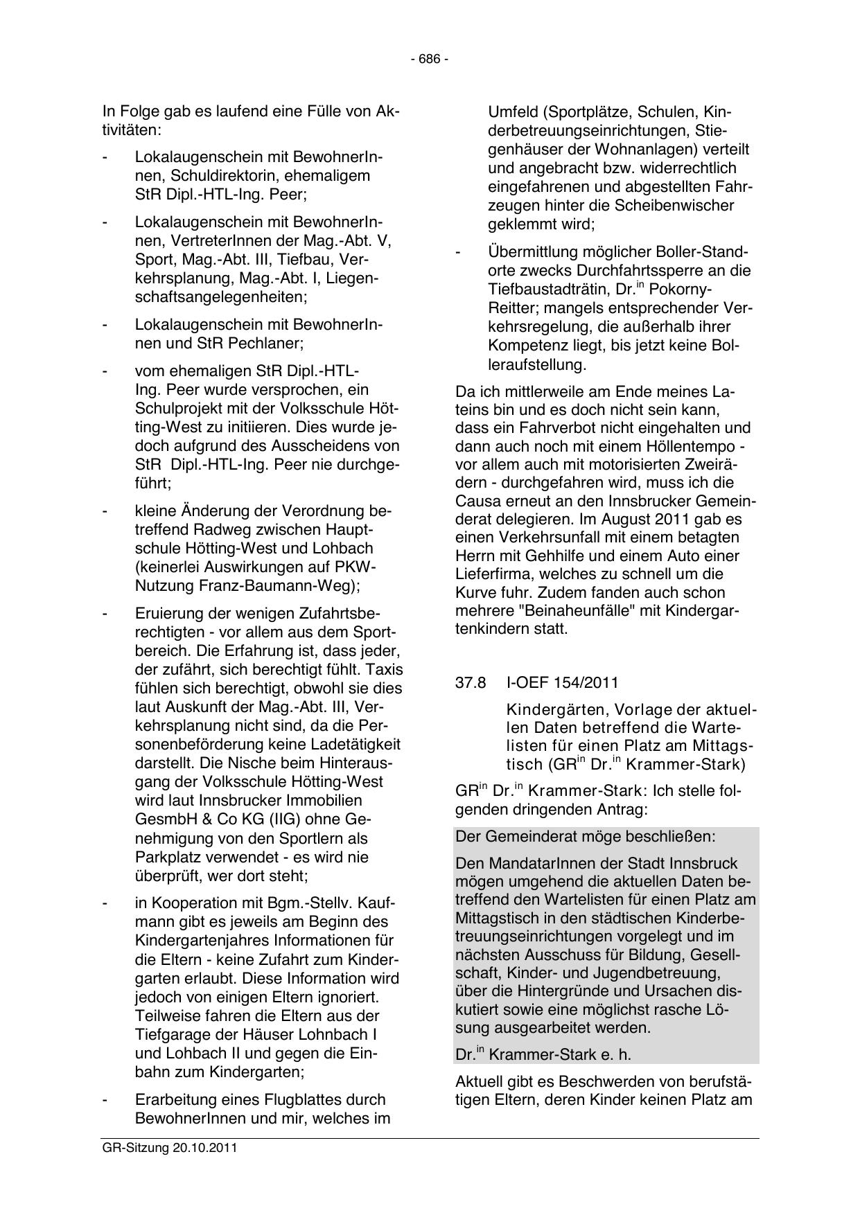 Causa erneut an den Innsbrucker Gemeinderat delegieren. Im August 2011 gab es