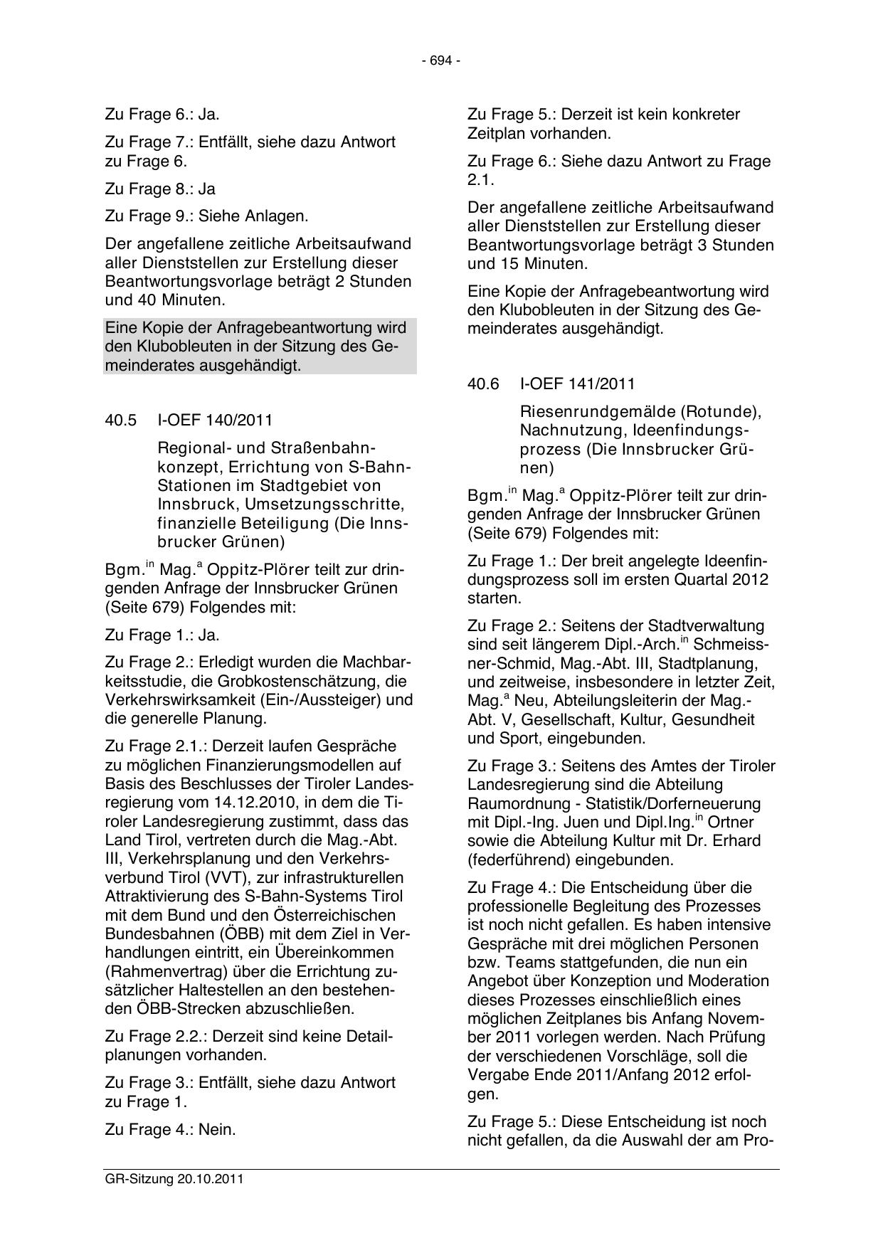 Bgm.in Mag.a Oppitz-Plörer teilt zur dringenden Anfrage der Innsbrucker Grünen