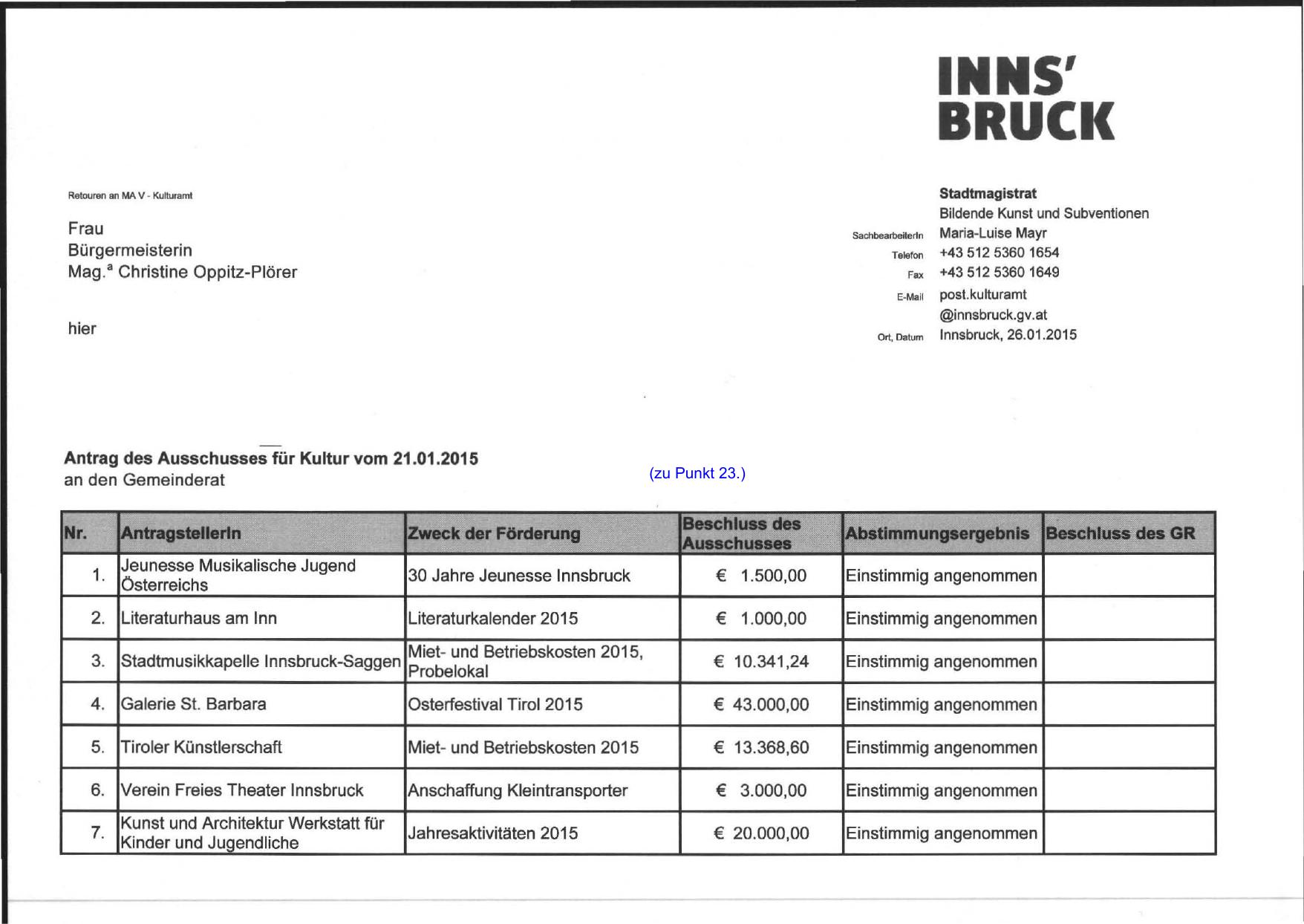 Antrag des Ausschusses für Kultur vom 21.01.2015