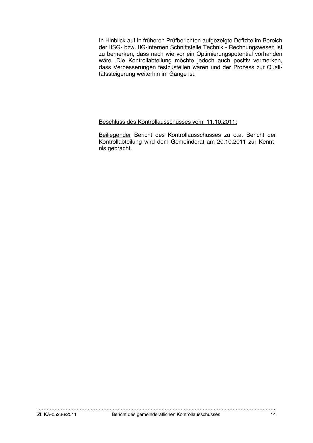 Kontrollabteilung wird dem Gemeinderat am 20.10.2011 zur Kenntnis gebracht.