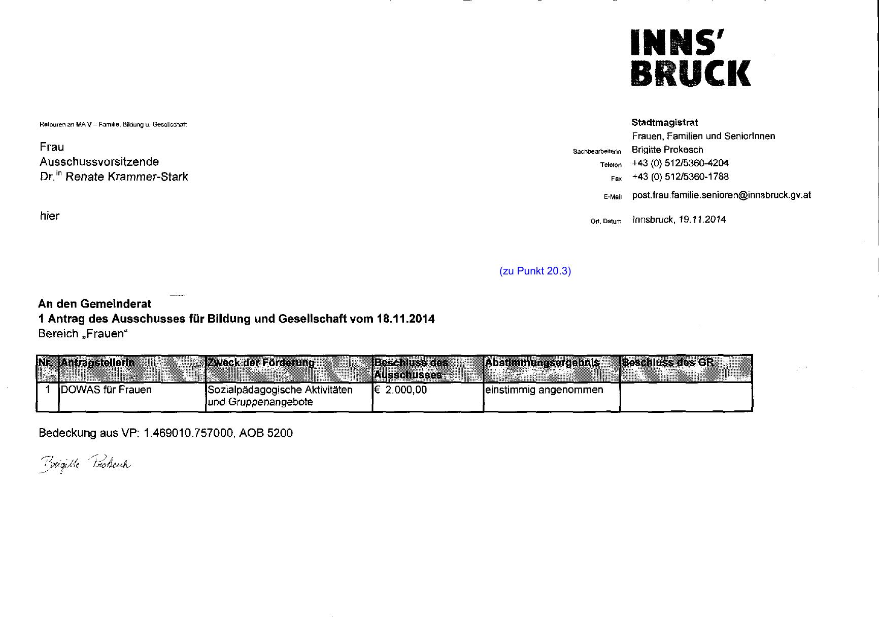 1 Antrag des Ausschusses für Bildung und Gesellschaft vom 18.11.2014