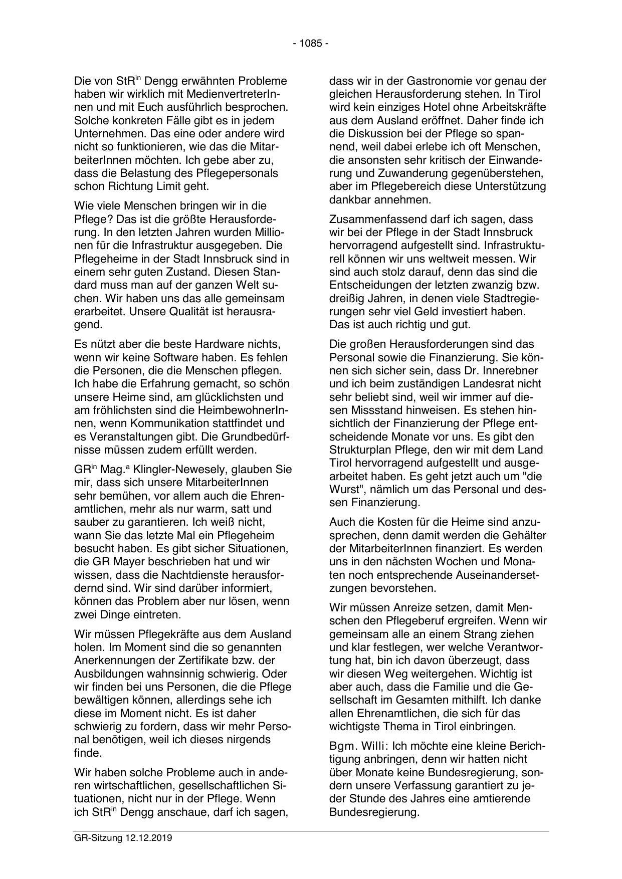 Bgm. Willi: Ich möchte eine kleine Berichtigung anbringen, denn wir hatten nicht