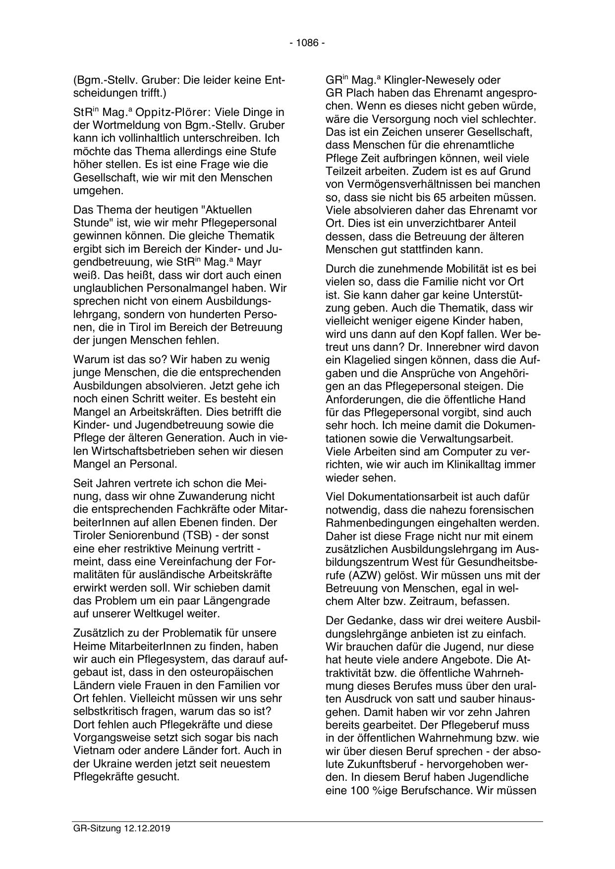 GR Plach haben das Ehrenamt angesprochen. Wenn es dieses nicht geben würde,