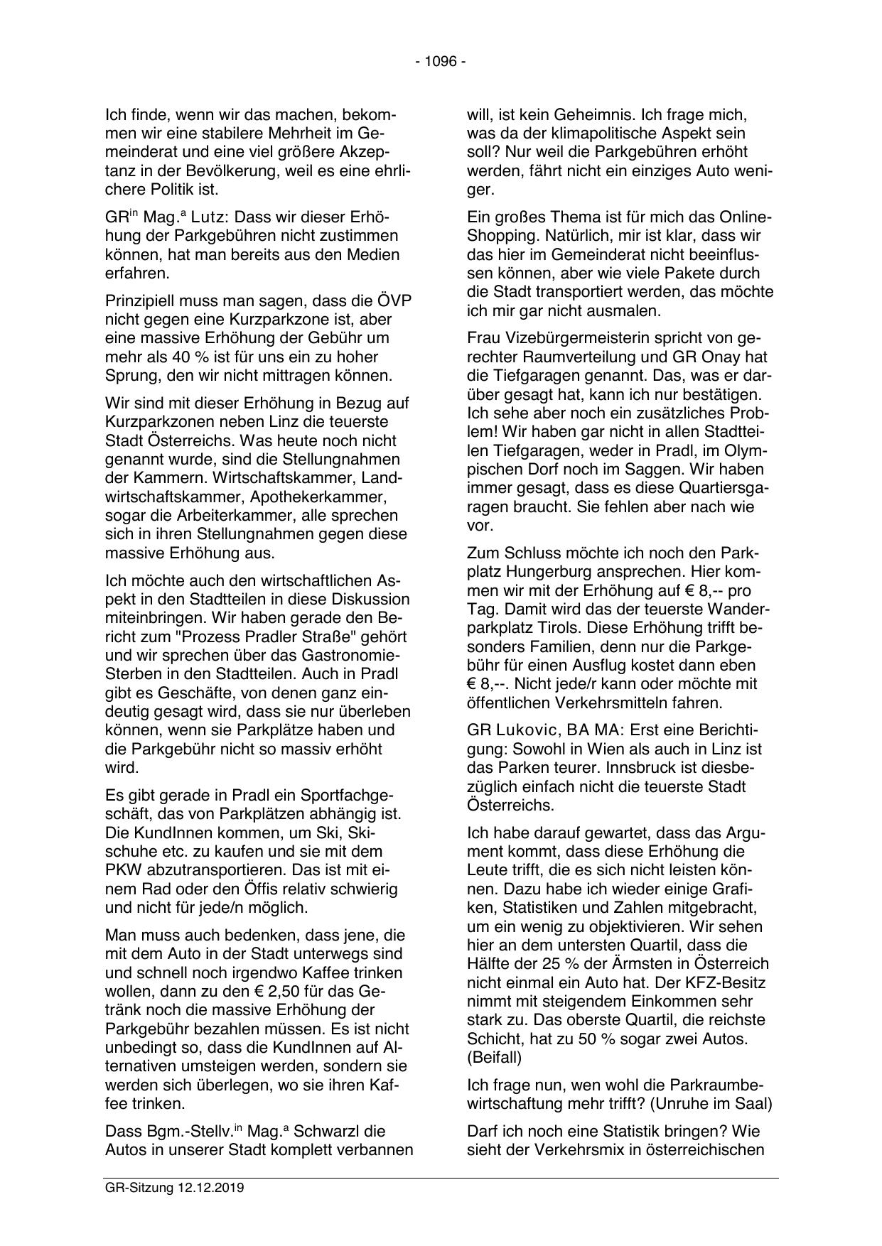 GRin Mag.a Lutz: Dass wir dieser Erhöhung der Parkgebühren nicht zustimmen