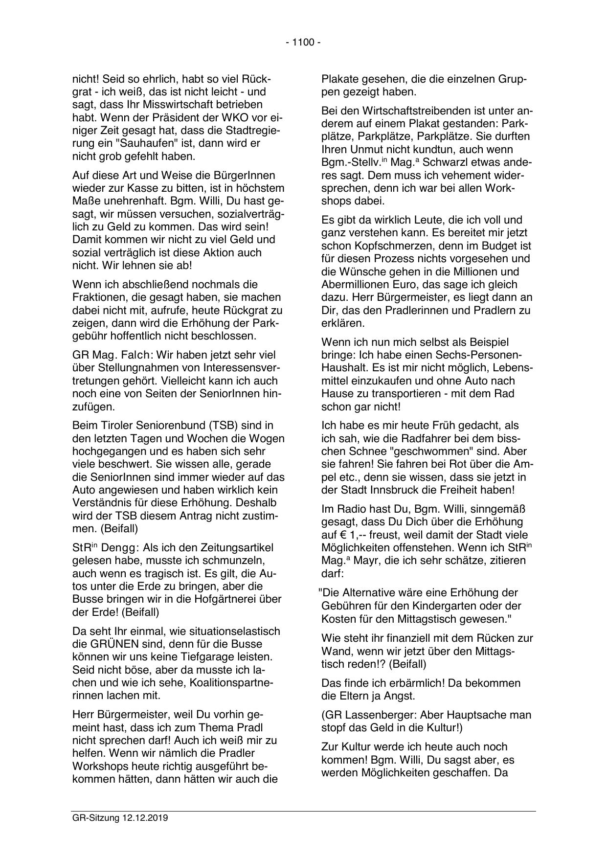 zeigen, dann wird die Erhöhung der Parkgebühr hoffentlich nicht beschlossen.
