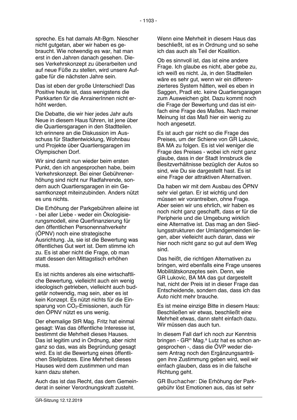 GR Buchacher: Die Erhöhung der Parkgebühr löst Emotionen aus, das ist sehr