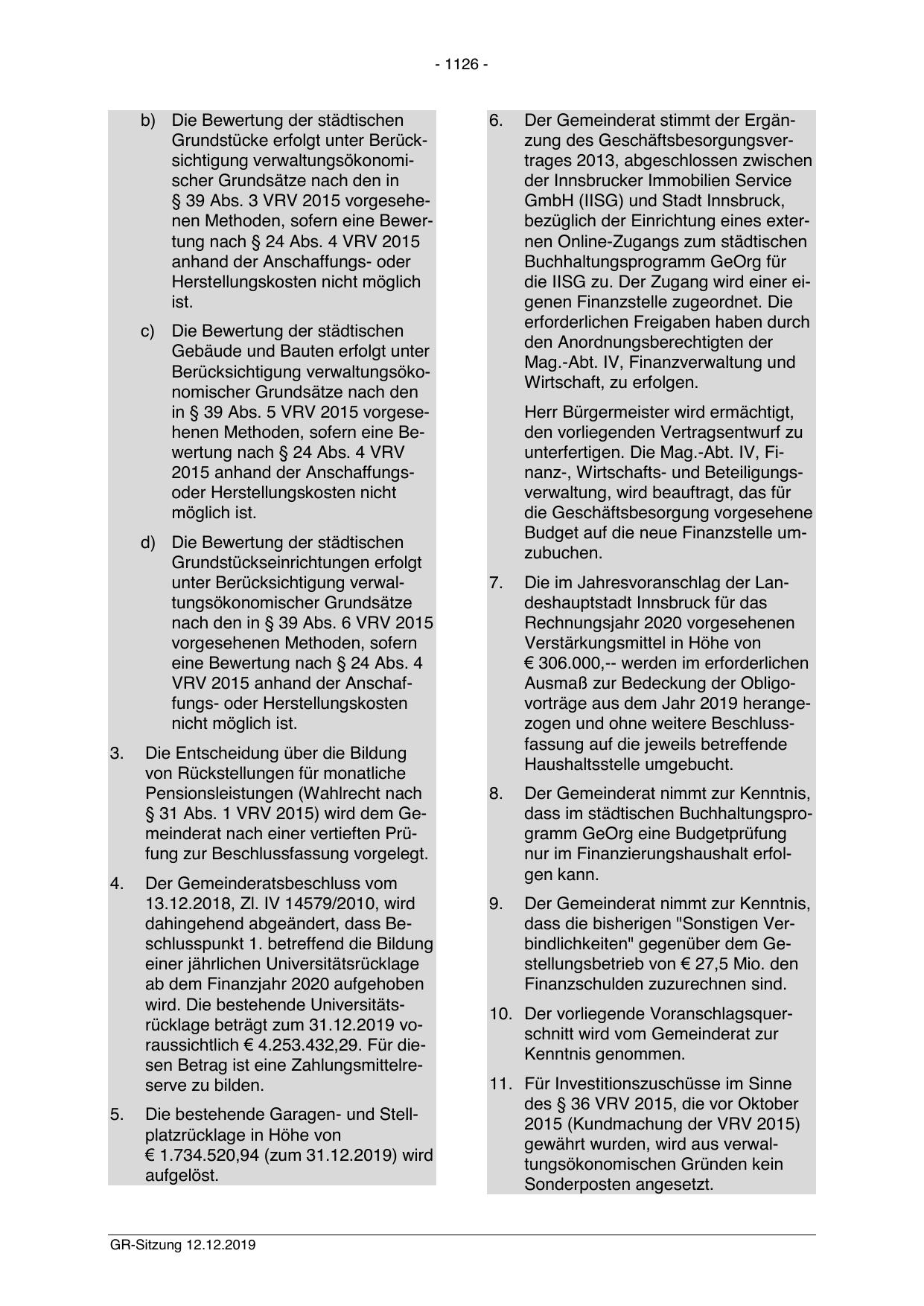§ 31 Abs. 1 VRV 2015) wird dem Gemeinderat nach einer vertieften Prüfung zur Beschlussfassung vorgelegt.