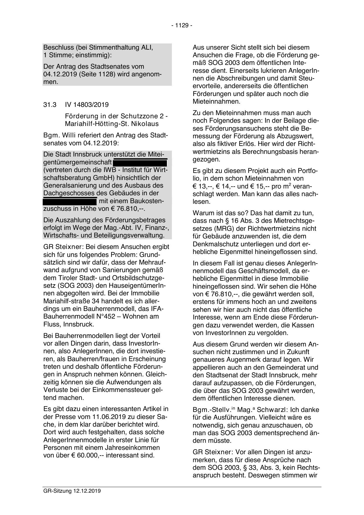 GR Steixner: Vor allen Dingen ist anzumerken, dass für diese Ansprüche nach