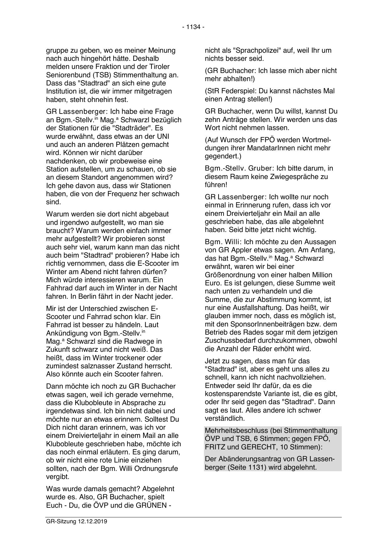 Der Abänderungsantrag von GR Lassenberger (Seite 1131) wird abgelehnt.
