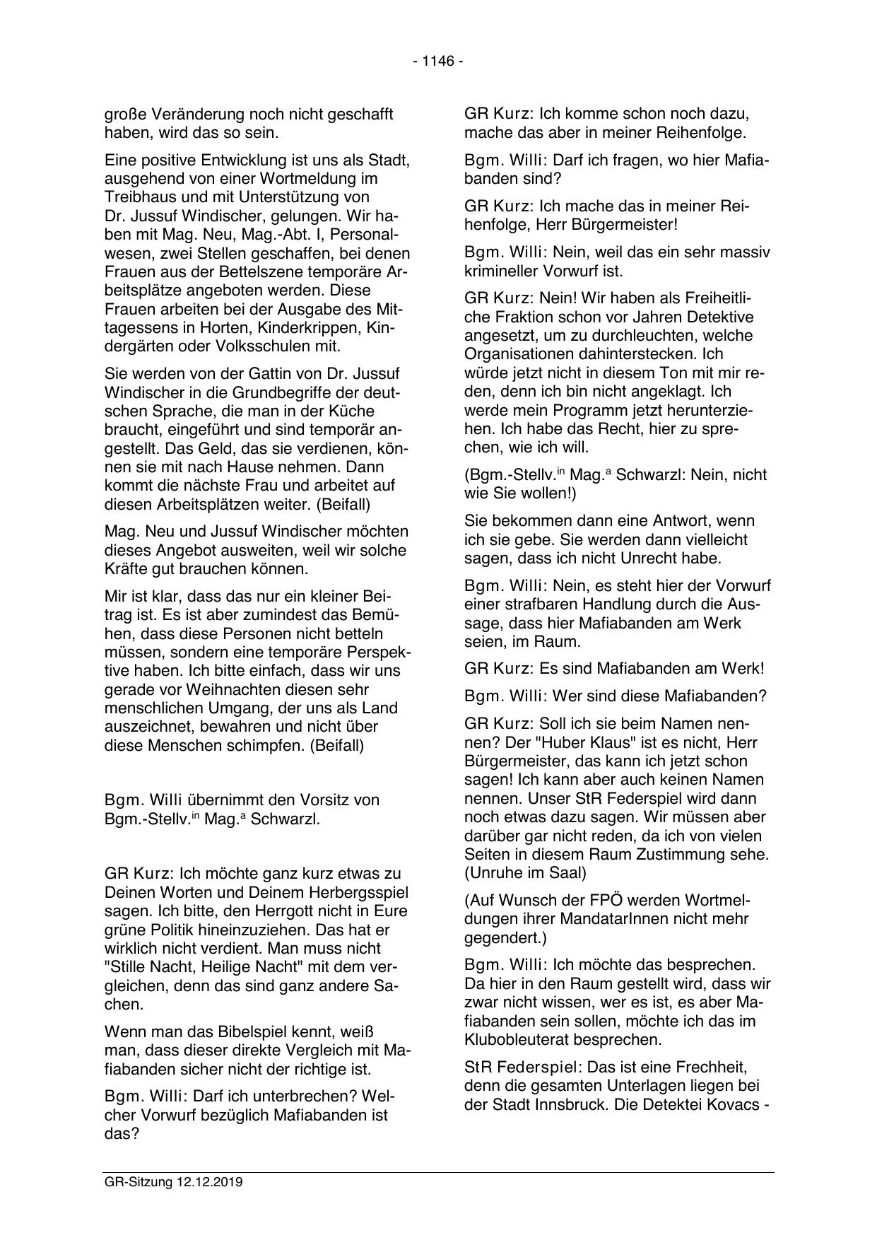 Bgm. Willi: Darf ich unterbrechen? Welcher Vorwurf bezüglich Mafiabanden ist