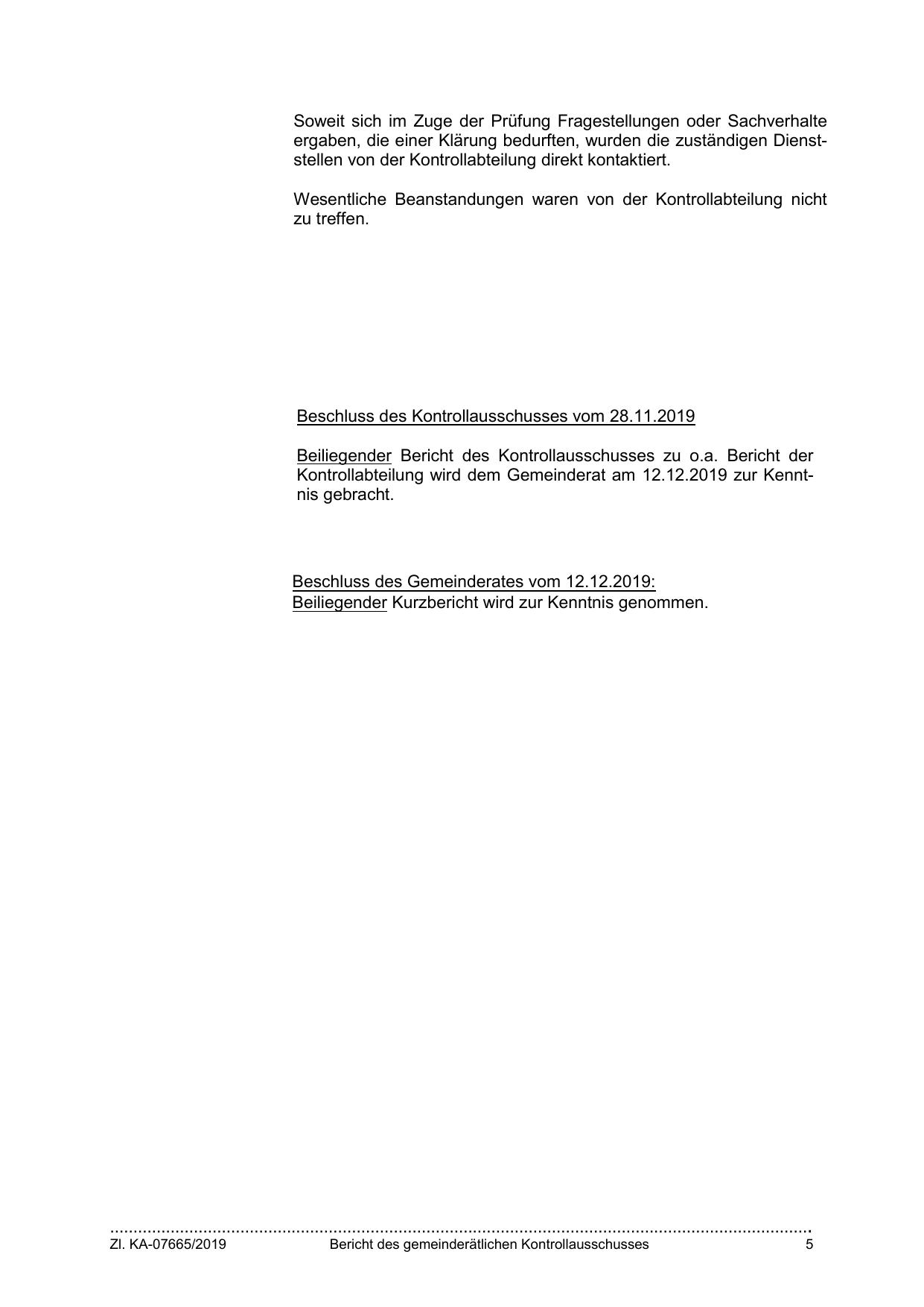 Kontrollabteilung wird dem Gemeinderat am 12.12.2019 zur Kenntnis gebracht.