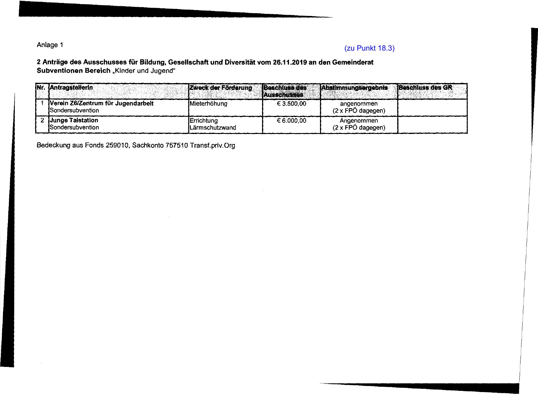 2 Anträge des Ausschusses für Bildung, Gesellschaft und Diversität vom 26.11.2019 an den Gemeinderat