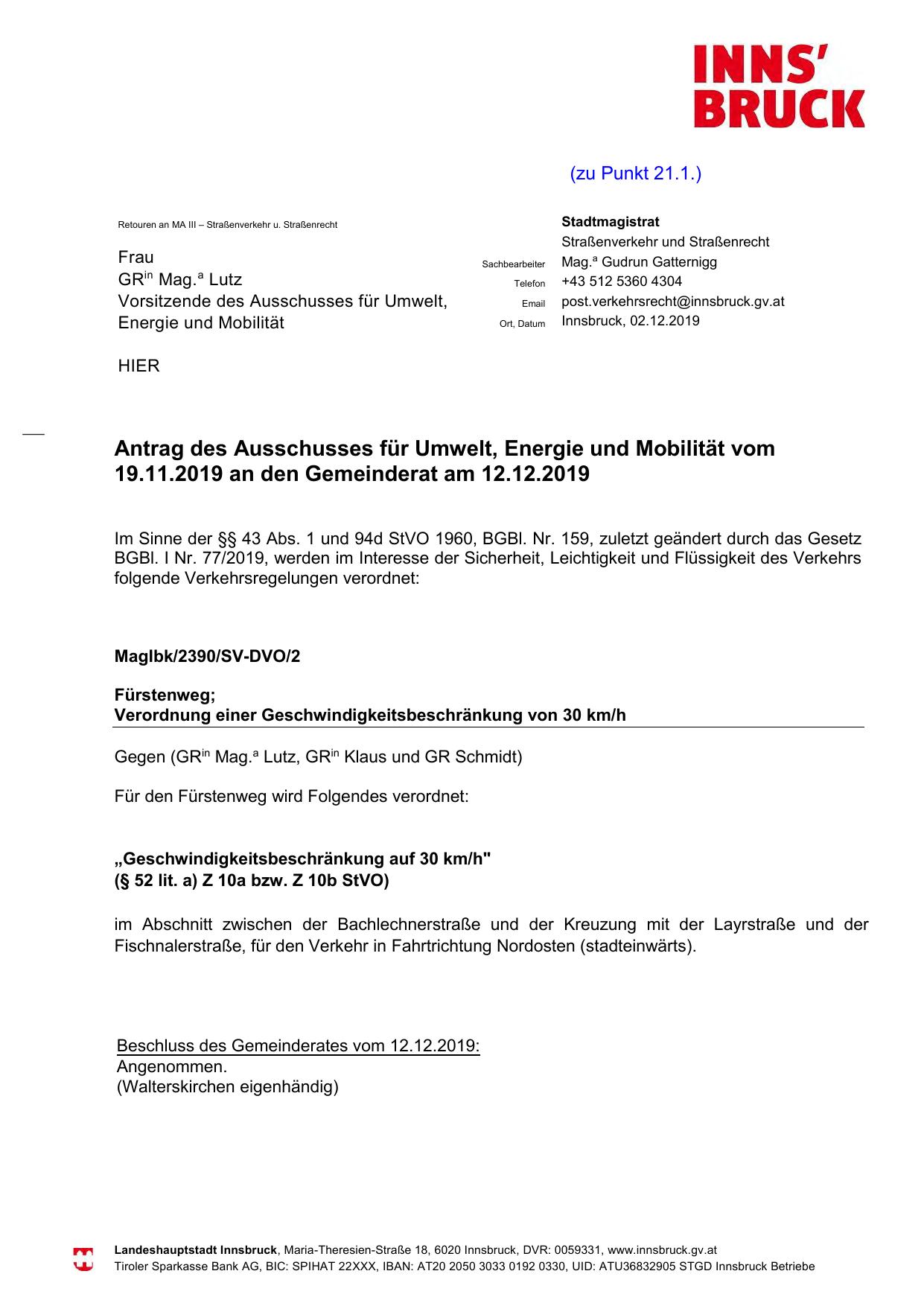 19.11.2019 an den Gemeinderat am 12.12.2019