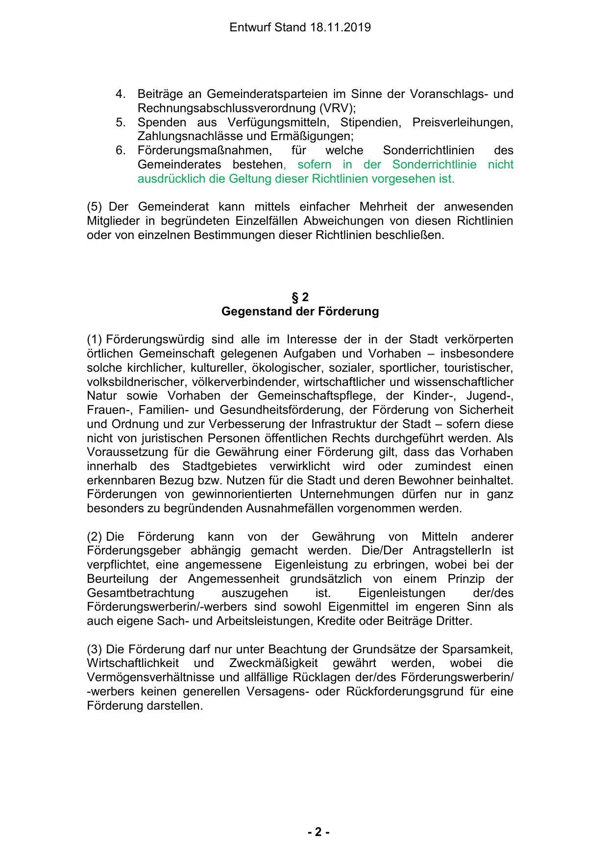 Gemeinderates bestehen, sofern in der Sonderrichtlinie nicht