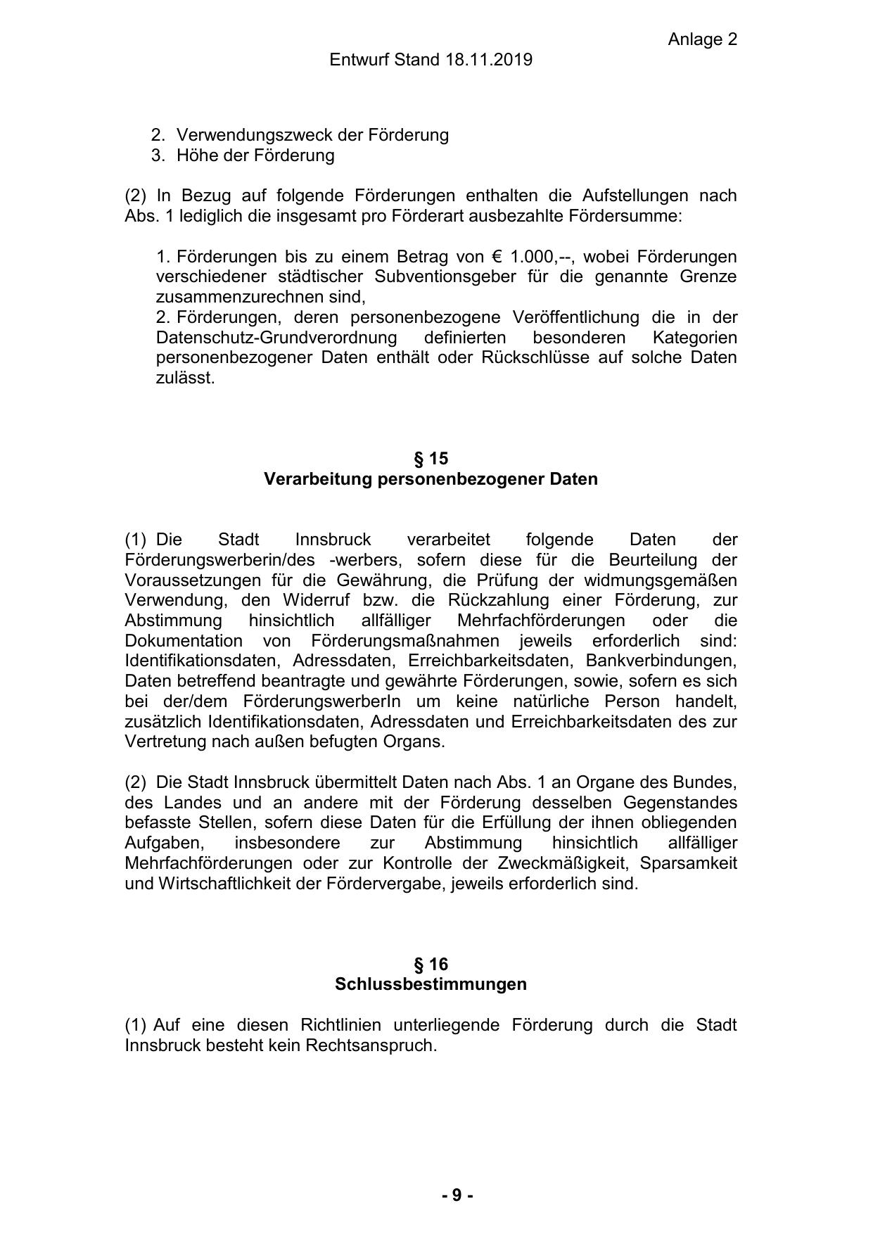 (2) Die Stadt Innsbruck übermittelt Daten nach Abs. 1 an Organe des Bundes,