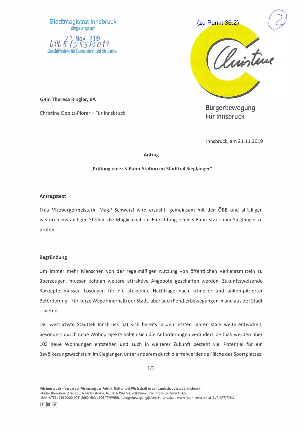 IBAN: A T75 4239 0000 00212660, BIC: VBOEATWWINN,buergerbewegung@fuer-innsbruck.at,www.fuer-innsbruck.at, ZVR: 527177147