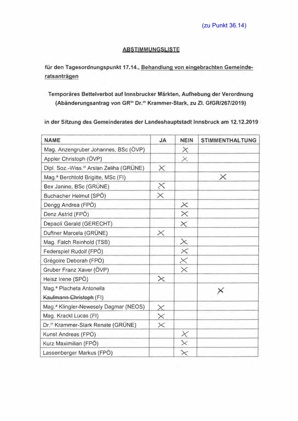 in der Sitzung des Gemeinderates der Landeshauptstadt Innsbruck am 12.12.2019