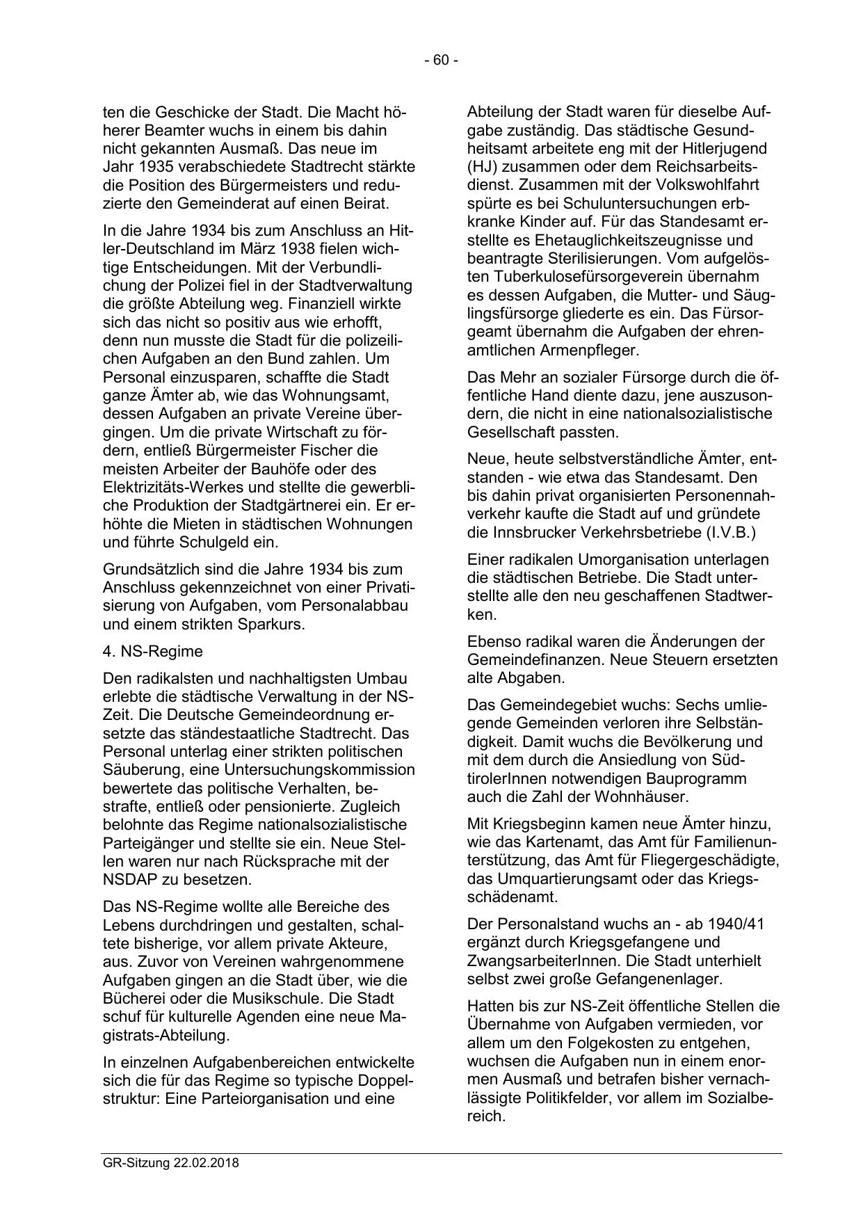 erlebte die städtische Verwaltung in der NSZeit. Die Deutsche Gemeindeordnung ersetzte das ständestaatliche Stadtrecht. Das
