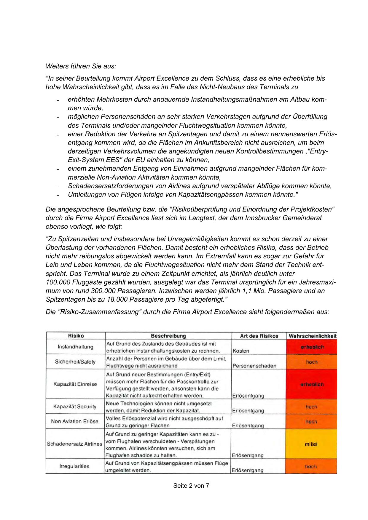 durch die Firma Airport Excellence liest sich im Langtext, der dem Innsbrucker Gemeinderat