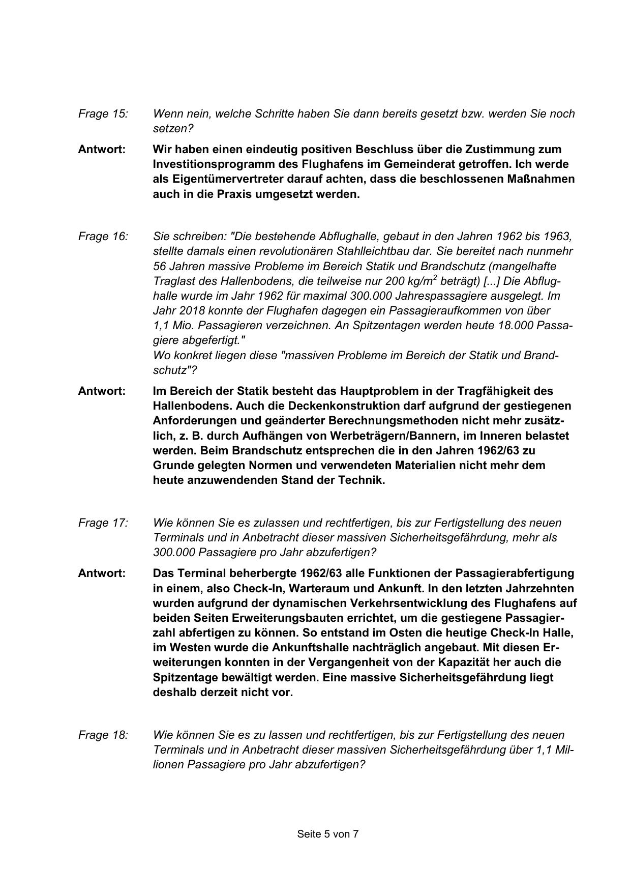 Investitionsprogramm des Flughafens im Gemeinderat getroffen. Ich werde