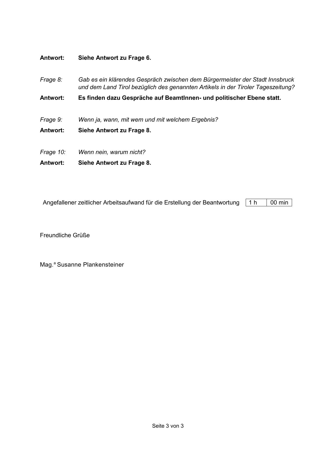 Gab es ein klärendes Gespräch zwischen dem Bürgermeister der Stadt Innsbruck