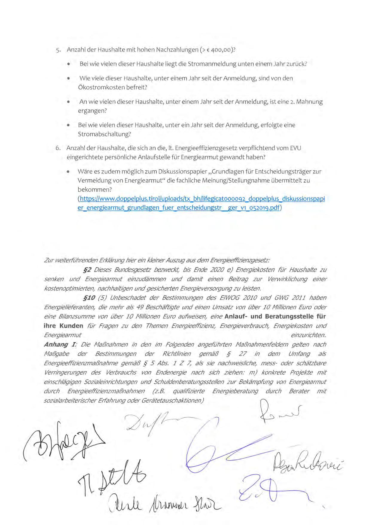 Vermeidung von Energiearmut" die fachliche Meinung/Stellungnahme übermittelt zu