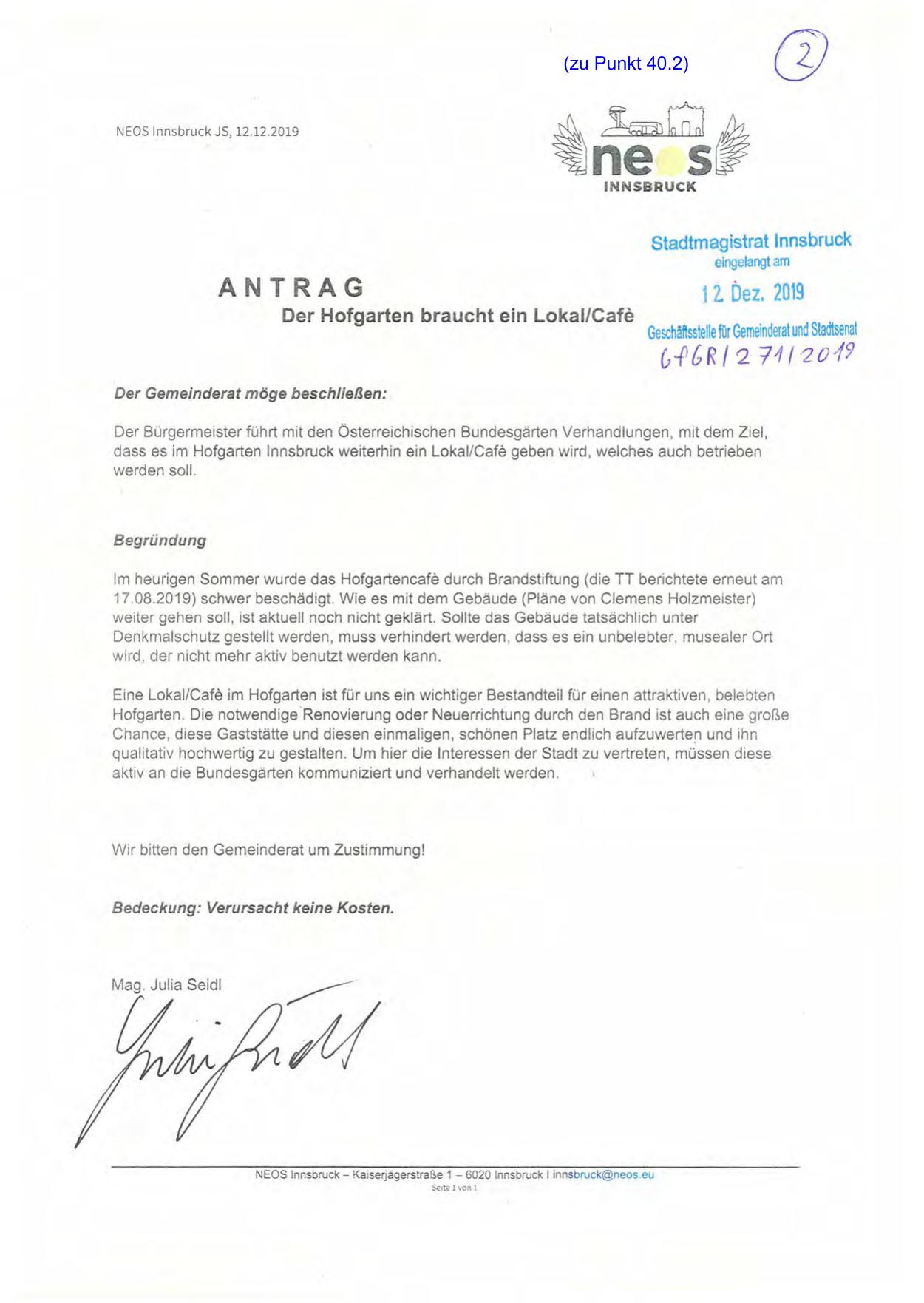 dass es im Hofgarten Innsbruck weiterhin ein Lokal/Cafe geben wird, wel ches auch betrieben