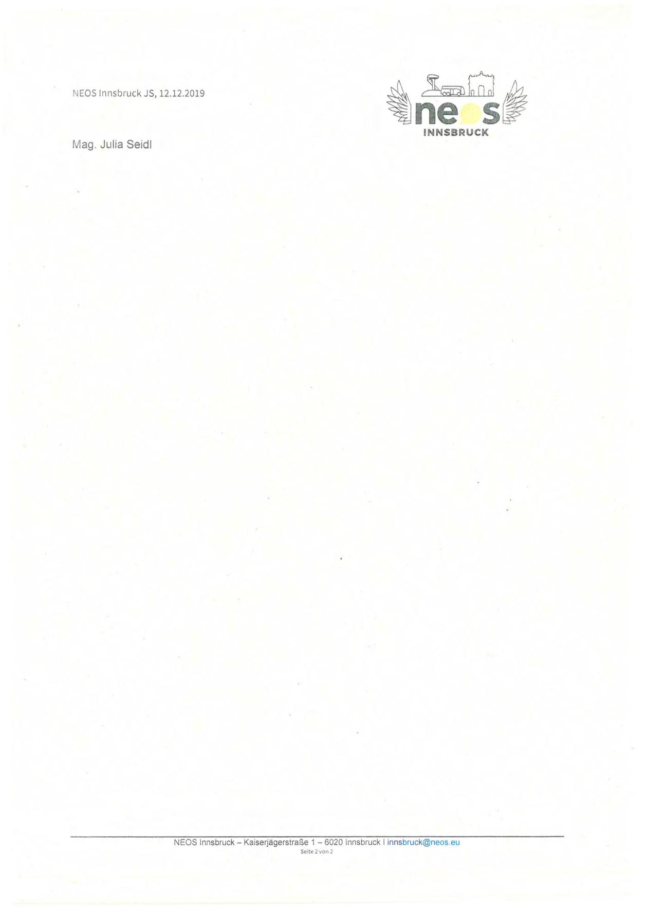 NEOS Innsbruck - Kaiserjägerstraße 1 - 6020 Innsbruck I innsbru ck@neos.eu