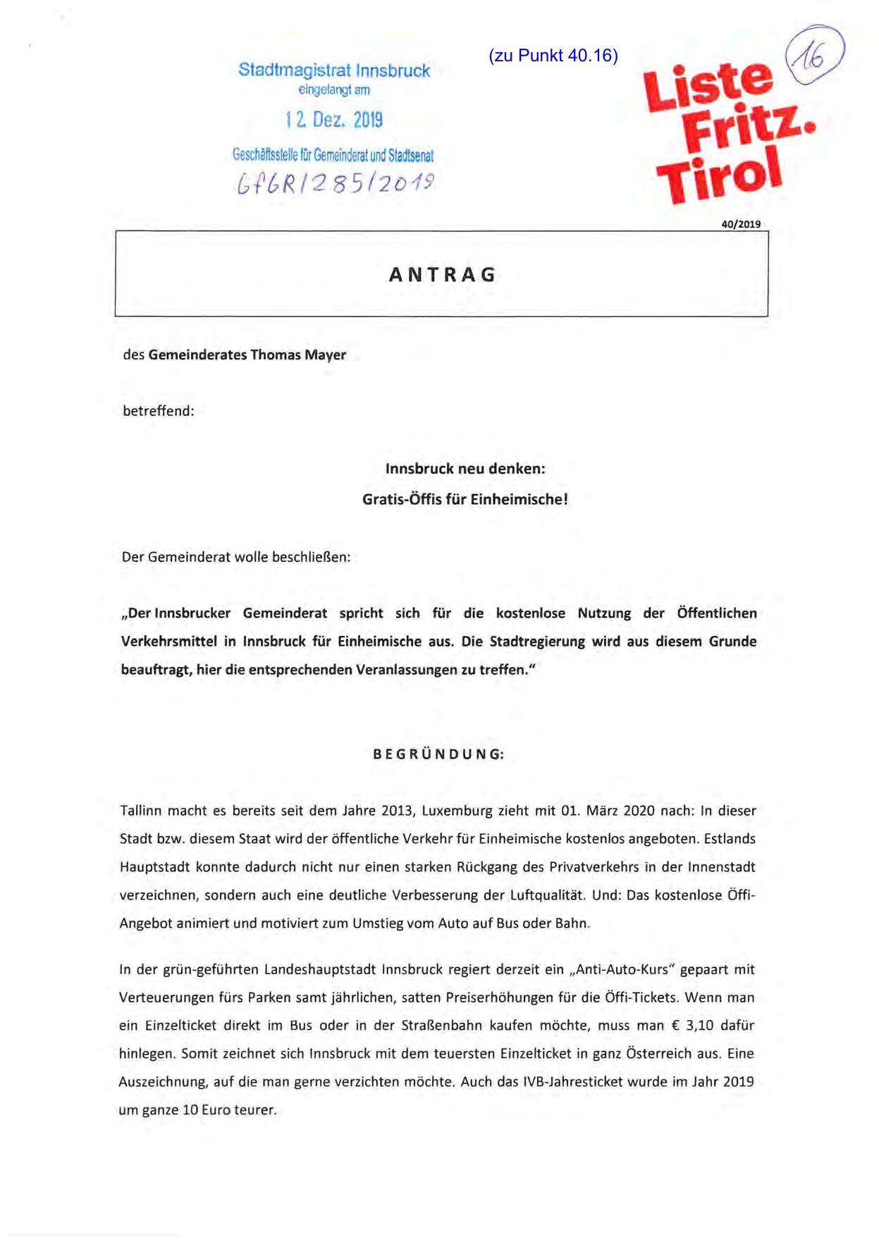 „Der lnnsbrucker Gemeinderat spricht sich für die kostenlose Nutzung der Öffentlichen