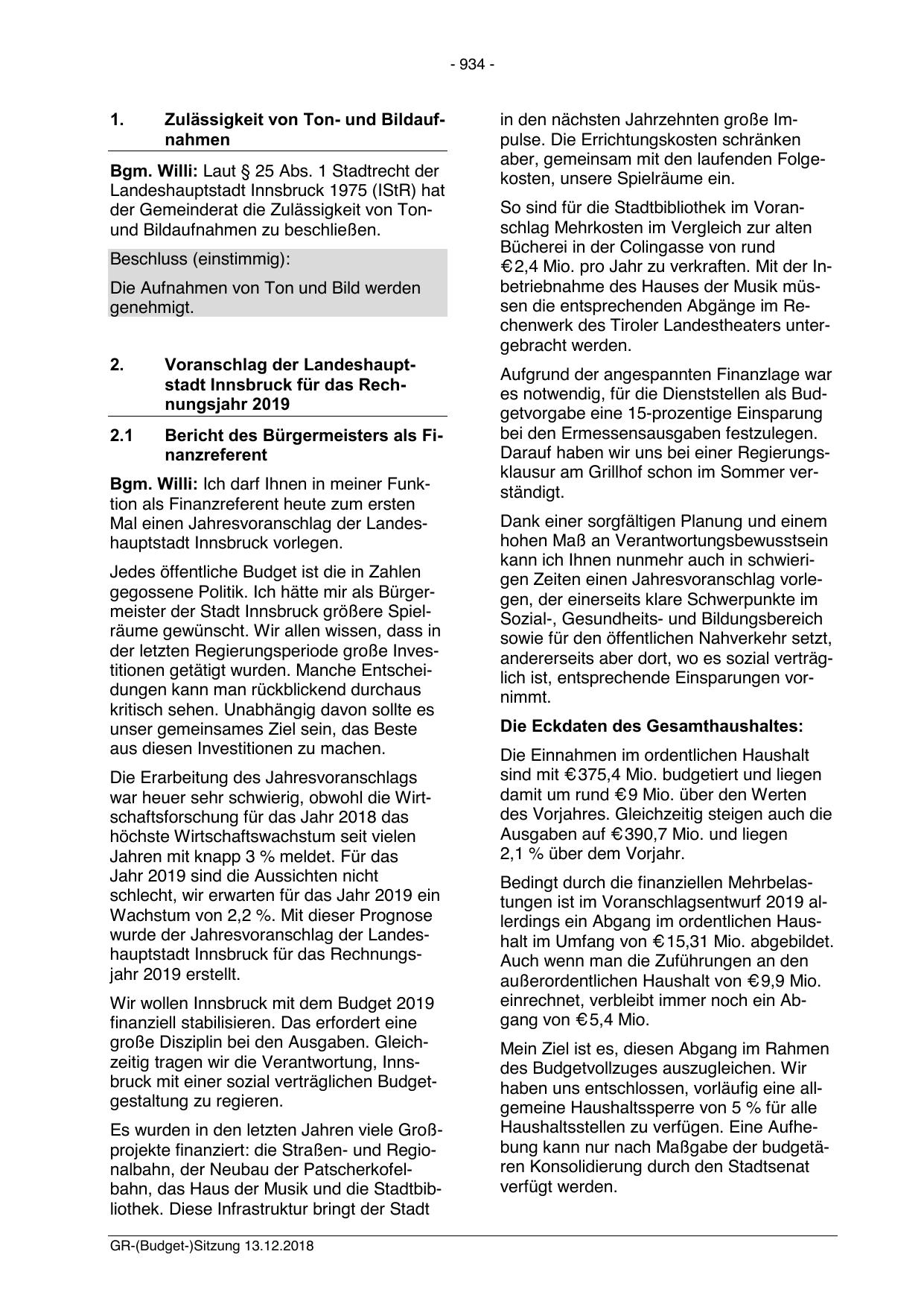 Bgm. Willi: Ich darf Ihnen in meiner Funktion als Finanzreferent heute zum ersten