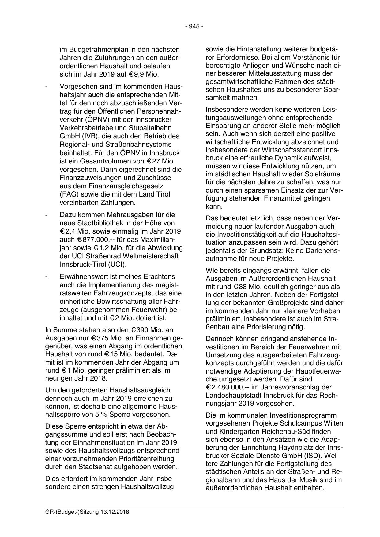 Landeshauptstadt Innsbruck für das Rechnungsjahr 2019 vorgesehen.